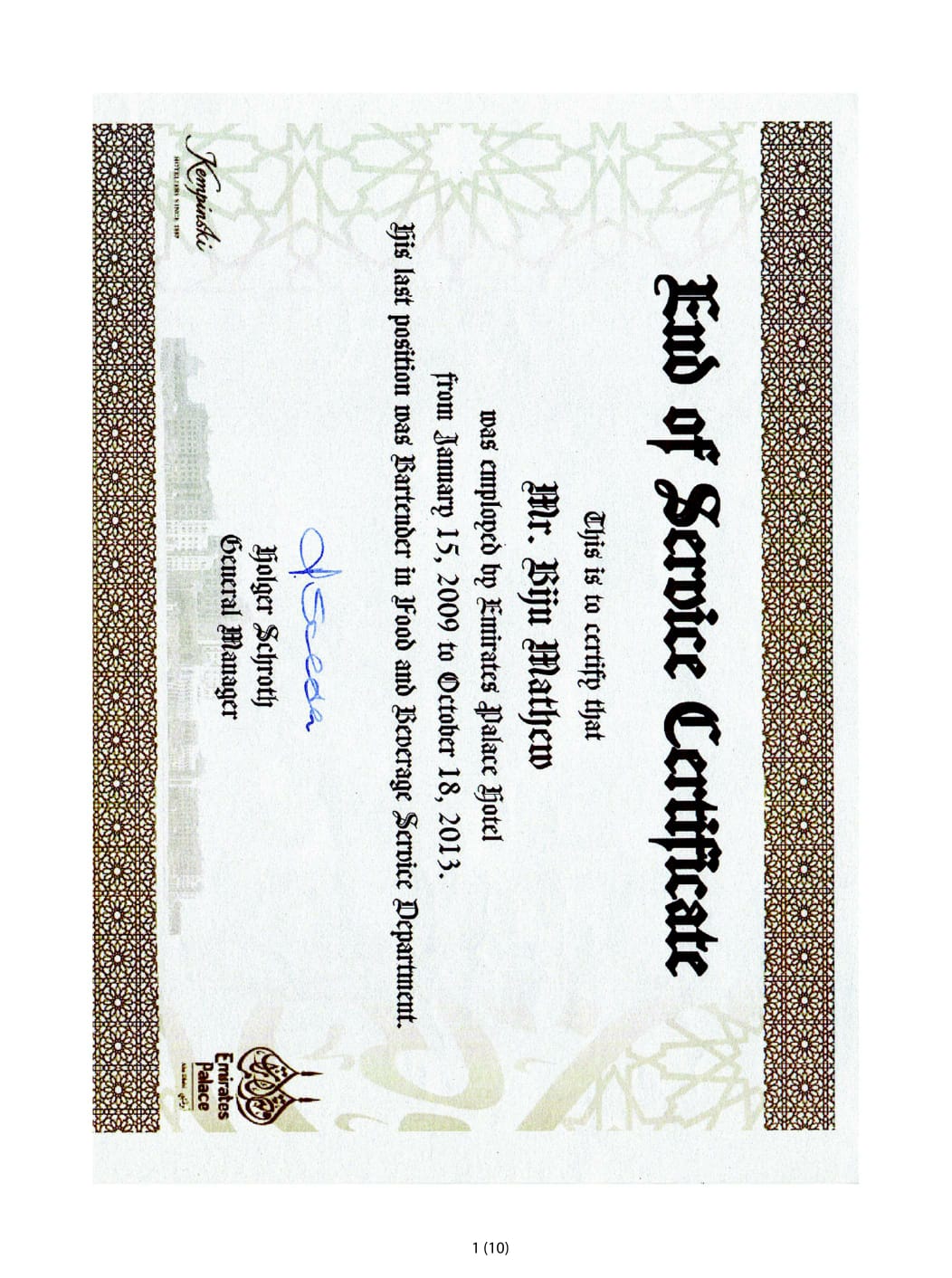 Speciality: Waiter - Waitress, Restaurant supervisor